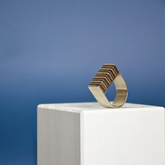 Jacqui's signature style takes its design inspiration from plywood. Using beautiful Tasmanian timber veneers and laminating with sterling silver to create unique and striking statement pieces in rings, cufflinks and pendants.